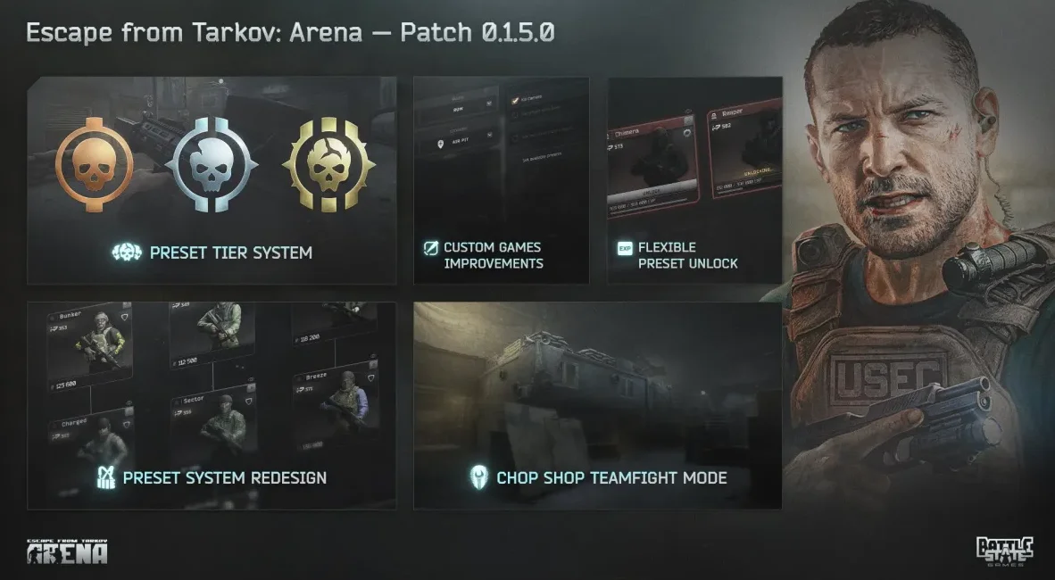 Mezi hlavní změny patří přepracované presety. Zároveň jsou ohlášené dropy pro streamy EFT:Arena.